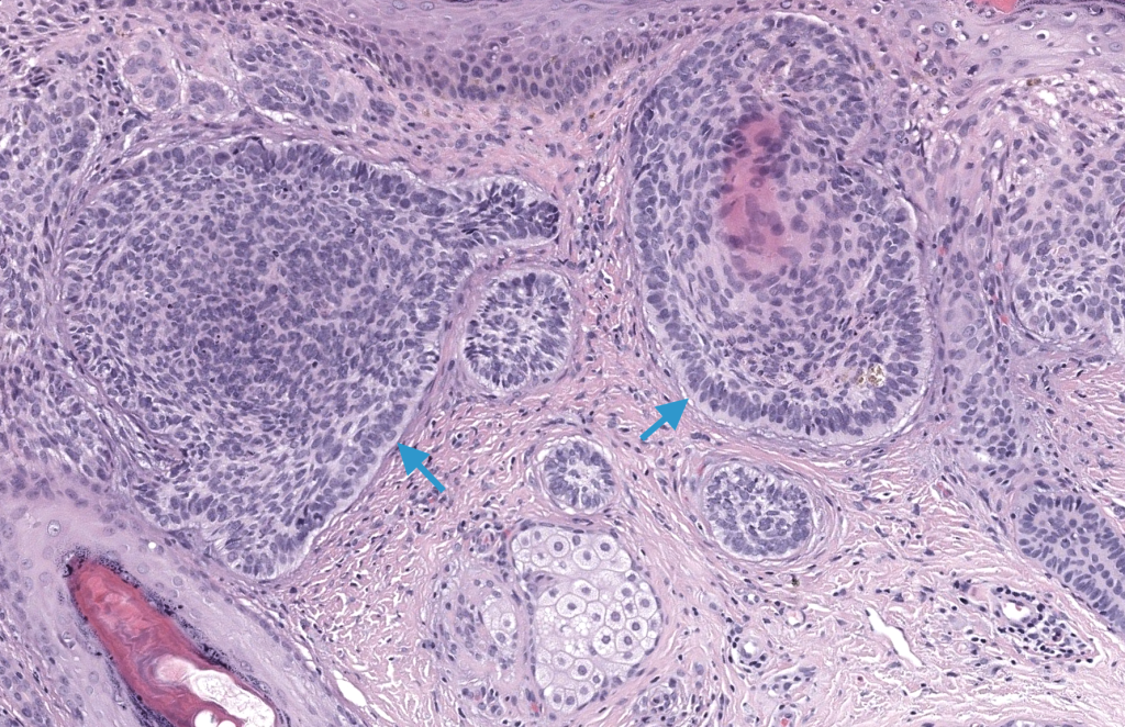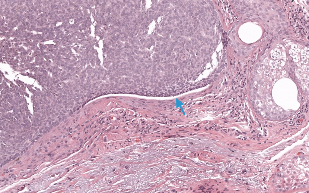 - Neoplasia maligna de queratinocitos basaloides, derivada de la capa basal epidérmica/unidades folículo-sebáceas, de bajo potencial metastásico pero alta capacidad de invasión local. Marzuka 2015, Fania 2020