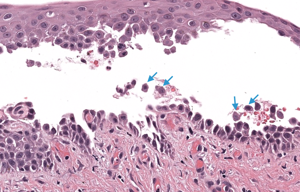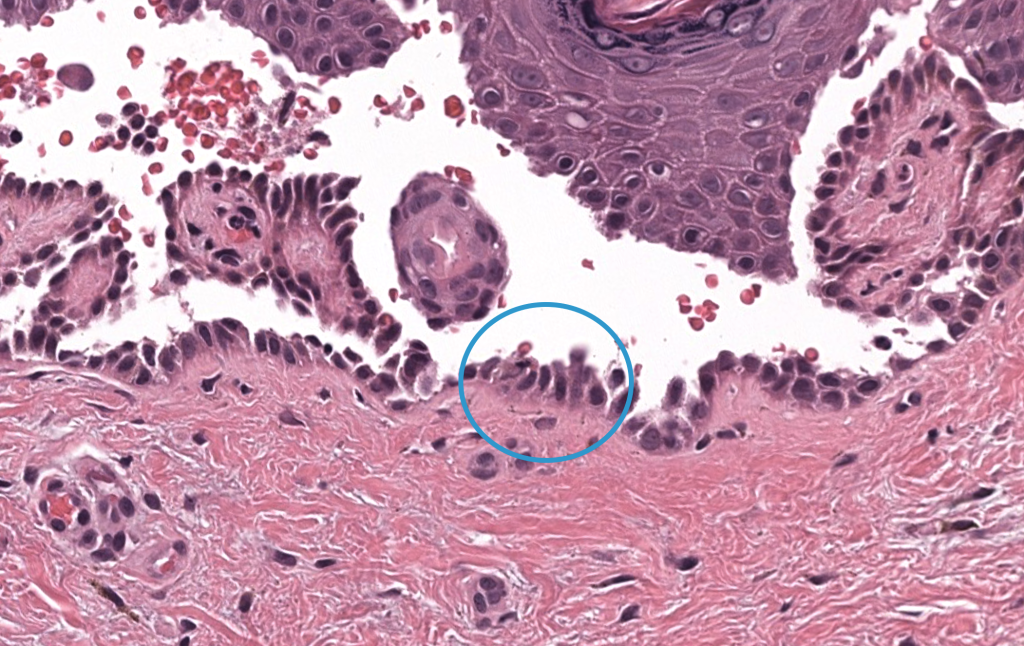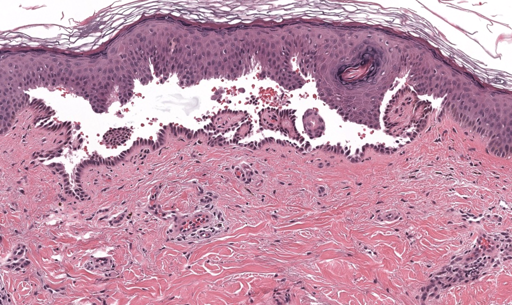 - Biopsia de ampolla reciente / borde → ampolla suprabasal + acantólisis + “fila de lápidas”.