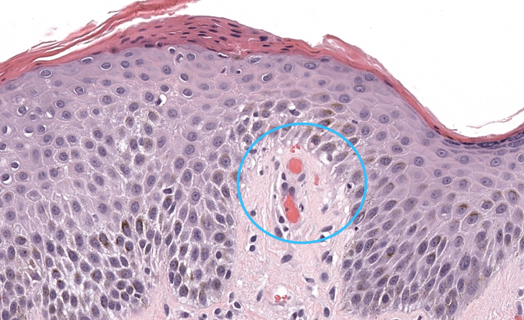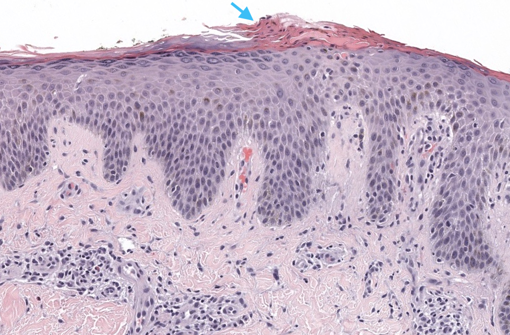 - Punch 4–5 mm de lesión secundaria reciente, enviada en formalina al 10%.