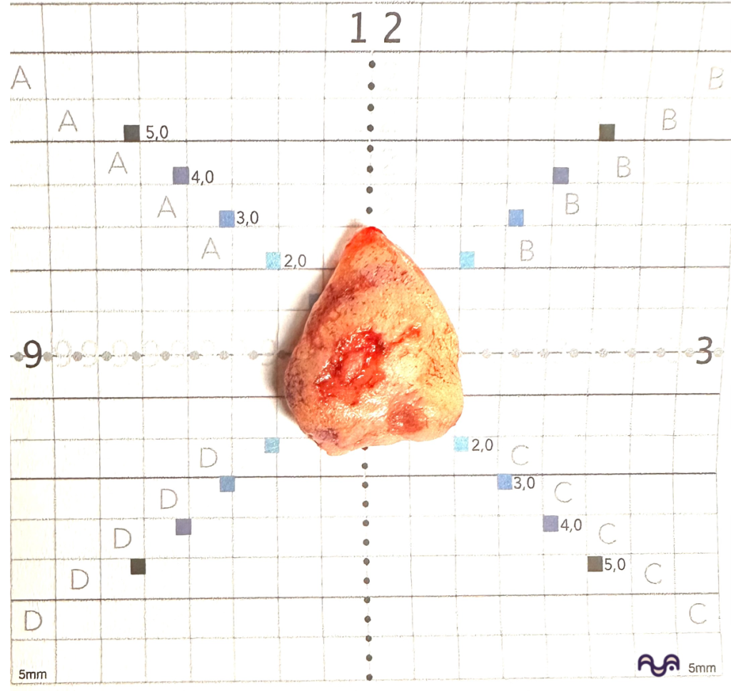 Piensa en el tumor como una mancha con “raíces” irregulares. En la cirugía de Mohs se retira una primera capa fina y la analiza; si en el mapa microscópico se detecta tumor en un punto, se retira otra capa solo donde hizo falta. Se repite hasta confirmar que ya no hay cáncer en los bordes. American Academy of Dermatology-2021